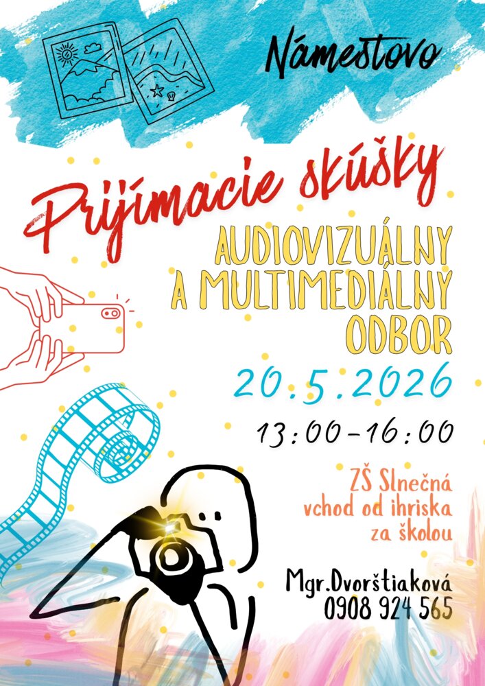 Vážení rodičia, milí žiaci, v mesiaci máj pripravujeme na našej škole prijímacie skúšky. Ak máte záujem o štúdium, preštudujte si informácie o tom, ako budú prijímacie skúšky prebiehať v jednotlivých odboroch. Tešíme sa na vás!